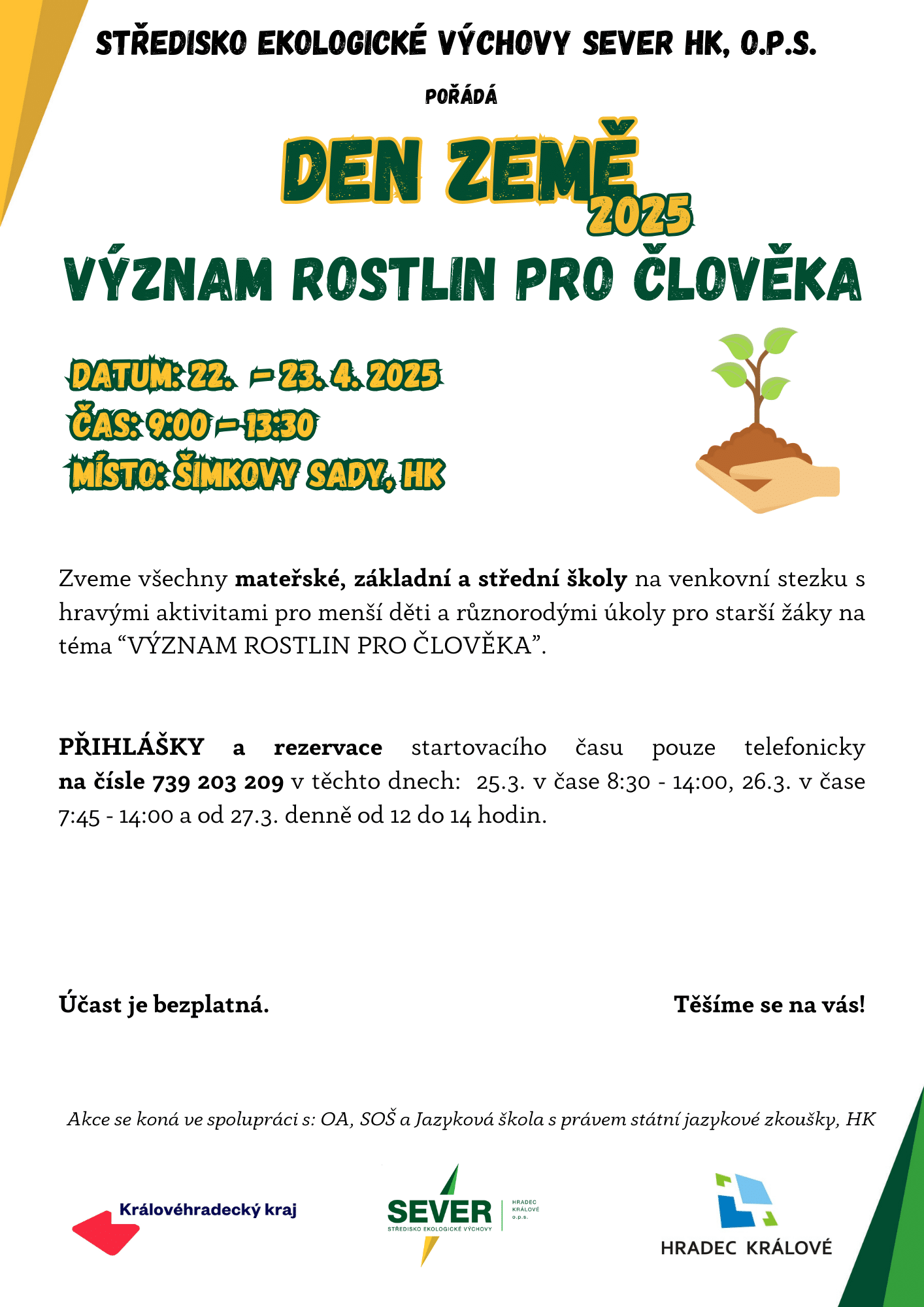 I letos připravujeme pro mateřské, základní a střední školy program k oslavám DNE ZEMĚ. Tentokrát na téma „Význam rostlin pro člověka“.