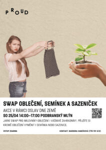 Pokud máte doma přebytečné oblečení stále v dobrém stavu nebo přebytky semínek a sazeniček, přineste je v pátek 24.4. od 7:00 do 17:00 hodin do Podbranského mlýna. Samotný swap, kde si naopak můžete nové úlovky pořídit, bude probíhat v sobotu 25.4. od 14:00 do 17:00 hodin.
