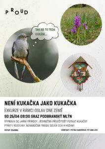 Konec dubna je čas, kdy se k nám z Afriky vrací kukačky a zároveň rozkvétají kukačky. Pojďte s námi na výpravu, kde budete mít jedinečnou příležitost potkat kukačky ptáky a zároveň se pokochat i kukačkami rostlinami. Cestou budeme pozorovat jarní přírodu a povídat si o zajímavých rostlinách a živočiších.