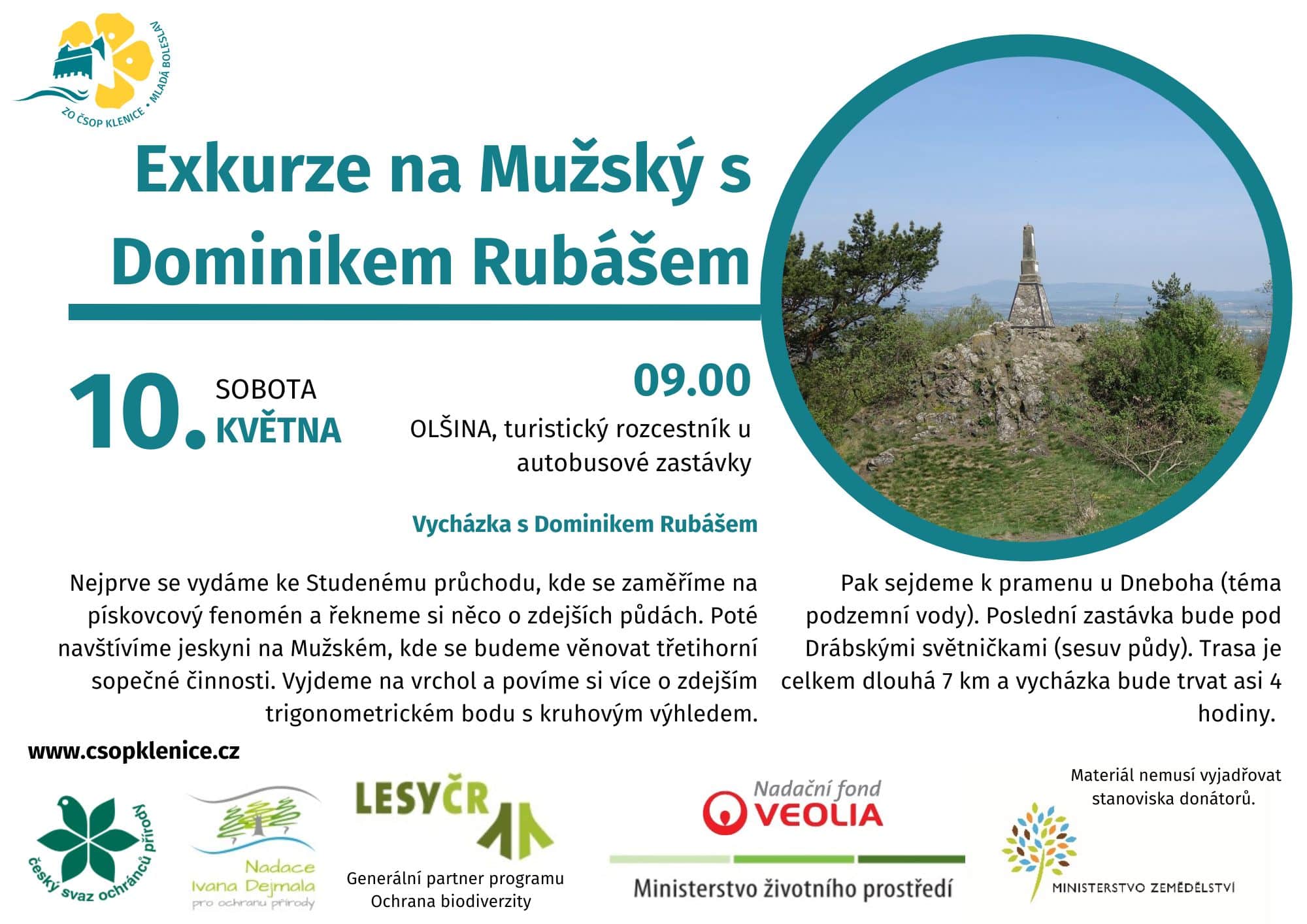 Nejprve se vydáme ke Studenému průchodu, kde se zaměříme na pískovcový fenomén a řekneme si něco o zdejších půdách. Poté navštívíme jeskyni na Mužském, kde se budeme věnovat třetihorní sopečné činnosti. Vyjdeme na vrchol a povíme si více o zdejším trigonometrickém bodu s kruhovým výhledem.