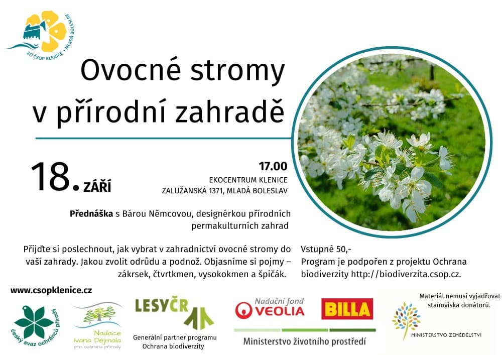 Přednáška o ovocných stromech v Ekocentru Klenice. Jakou zvolit odrůdu a podnož. Objasníme si pojmy – zákrsek, čtvrtkmen, vysokokmen a špičák.