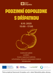 Přijďte s námi příjemně strávit podzimní odpoledne. Těšit se můžete na: moštování jablek vyrábění hravé a sportovní aktivity ochutnávku zdravých bezmasých dobrot klimakoutek pro zvídavé   Těšíme se na viděnou!