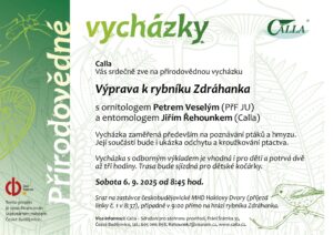 Calla Vás srdečně zvou na přírodovědnou vycházku „Výprava k rybníku Zdráhanka“ s ornitologem Petrem Veselým (PřF JU) a entomologem Jiřím Řehounkem (Calla).