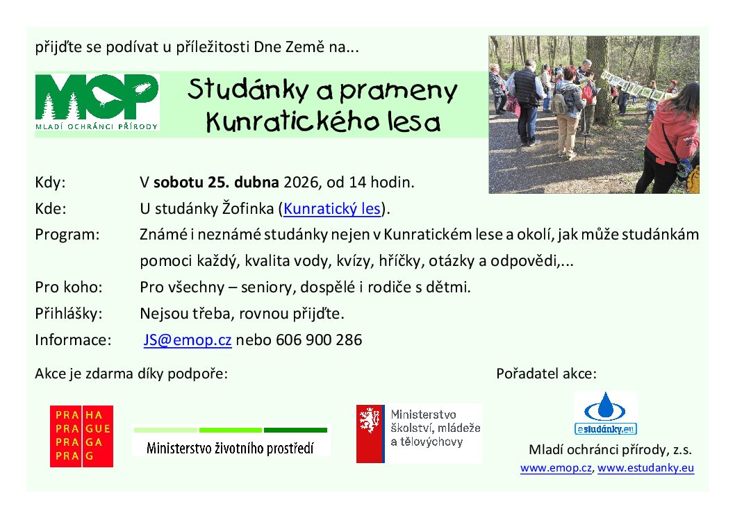 Na malé i velké návštěvníky čekají hrátky, kvízy a informace o studánkách a pramenech v Kunraticích. A také v celé Praze i jinde v České republice. Tipy na výpravy za studánkami, možnosti měření kvality vody, péče o studánky…