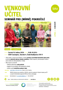 Učíte venku a chcete více? Přijďte si osahat principy a prostředky dlouhodobé výuky venku, prakticky vyzkoušet vybrané metody a pomůcky a získat inspiraci, jak koncepčně začlenit učení venku do svého předmětu a školy. Více informací a kontakty pro přihlášení najdete v přiložené pozvánce. Seminář pořádá Lipka, školské zařízení pro environmentální vzdělávání Brno, ve spolupráci s […]