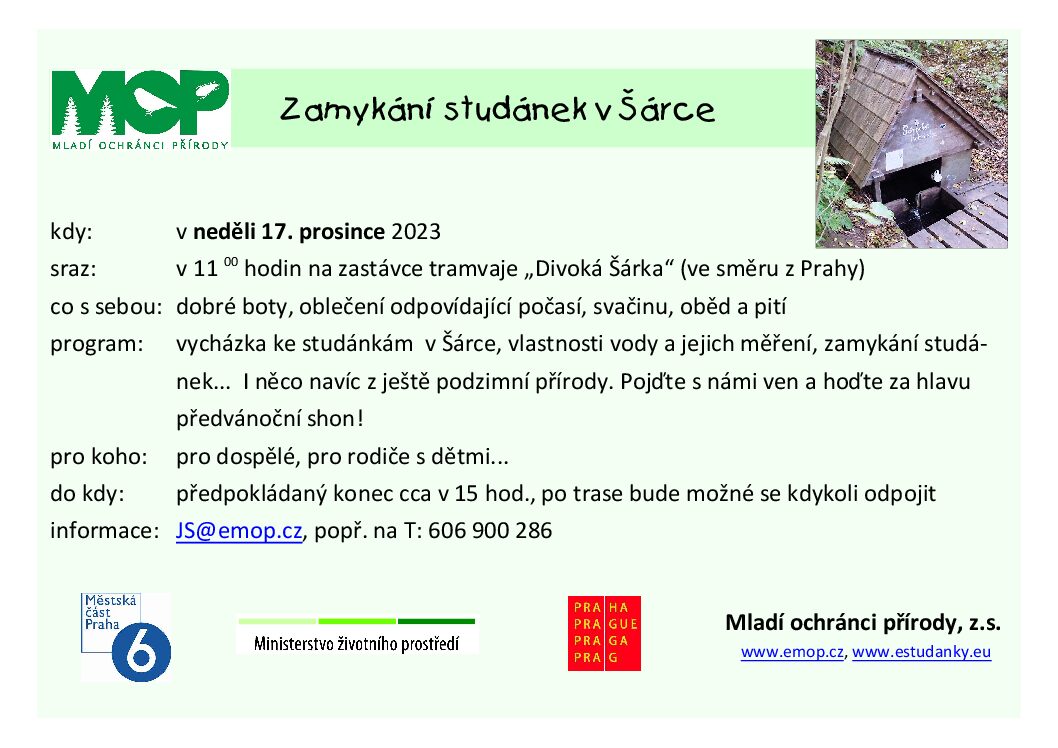 Pojďte se vydat za studánkami s ukázkami měření vlastností vody, seznámit se s kvalitou vody, historií a současností péče o studánky, jejich mapováním a dalšími studánkami v Praze 6, jinde v Praze i v celé ČR.